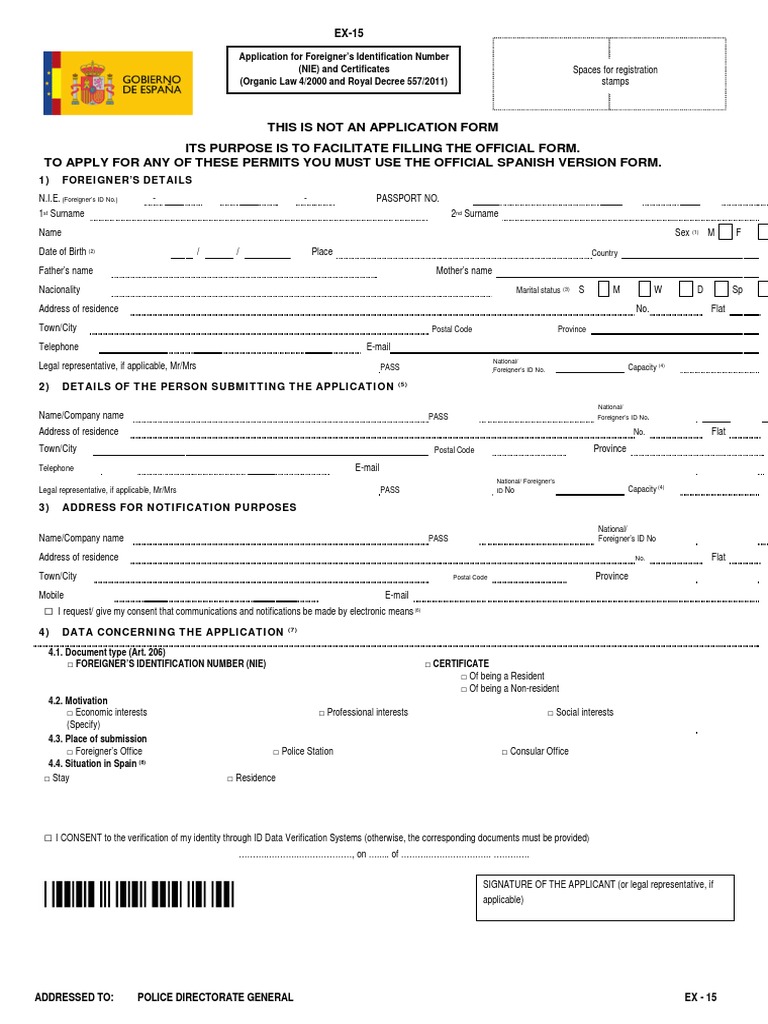 Pago de tasa para nie - Muestras de documentos from extranjeriaenespana.com Presentar su formulario en línea le proporciona una manera segura y fácil de pagar las tarifas de su solicitud. ¿cómo rellenar los formularios de ¿es posible obtener el nie en el país de origen de quien lo solicita? 2) datos del representante a efectos de presentación de.