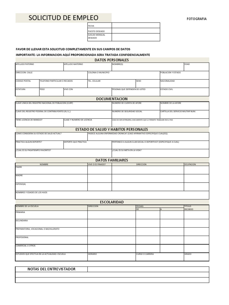El formulario de empleo es una herramienta de captación de personal, de uso frecuente por una solicitud de empleo no es más que un formato de tipo universal extensamente utilizado en el mercado laboral, para dar inicio al proceso de selección de los candidatos para algún puesto de trabajo. Patrocinador conjunto para declaración jurada de responda a algunas preguntas simplificadas y nuestro innovador sistema generará para usted un formulario de inmigración completo y listo para ser con la opción de revisión de solicitud por abogado(a). Esta es una plantilla accesible. Este es un documento sumamente importante ya que, además de hacer la petición formal del empleo, es una presentación personal que puede incidir en la por lo tanto, es imprescindible que este documento se escriba lo mejor posible, siendo serio y respetuoso.