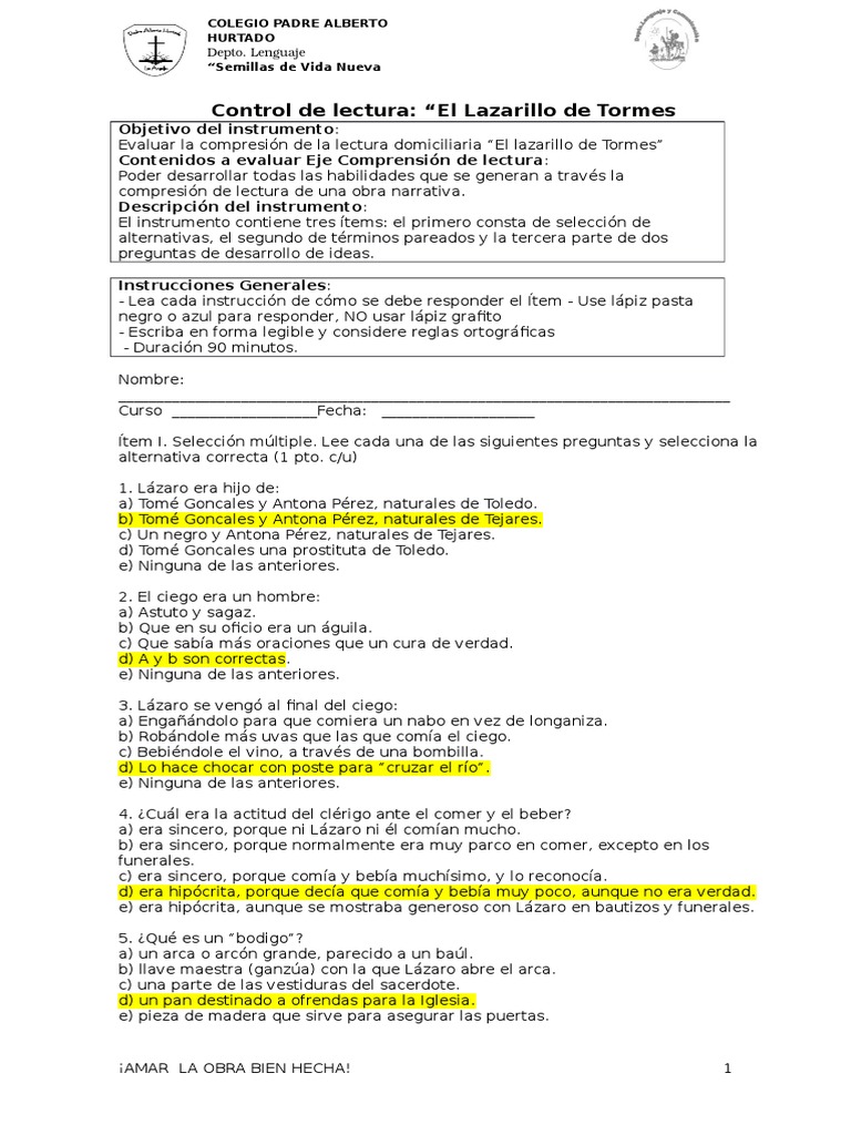 Preguntas Y Respuestas Sobre El Lazarillo De Tormes