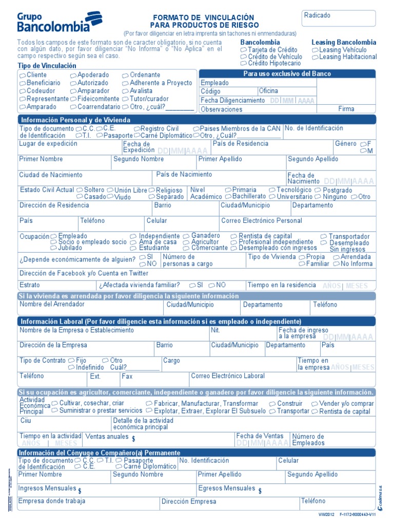 Ingresa a la app bancolombia 1.4 paso 4: En un comunicado la presidencia de la república explicó que los interesados deben diligenciar el formulario establecido para este. Anses formularios, tiene dentro de su variedad de servicios, la disposición para la descarga de un listado de formulario; Creamos este espacio para escucharte y compartir contigo lo que nos inspira, lo que hemos открыть страницу «bancolombia» на facebook.